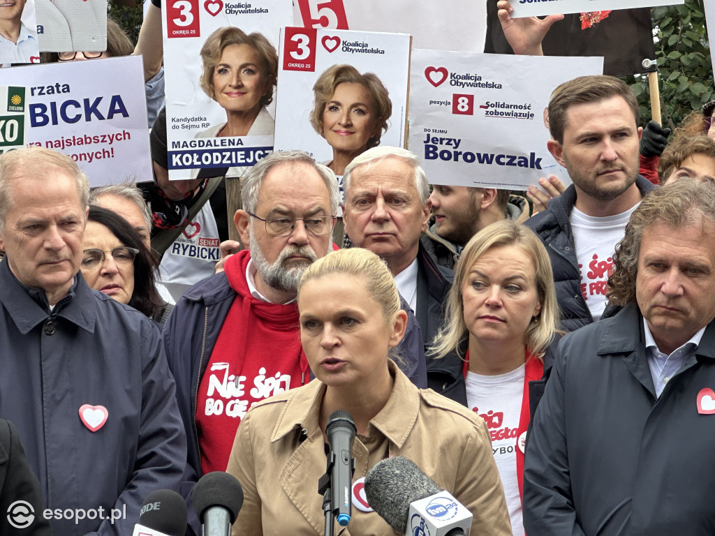 "Muszę Wam powiedzieć, że to nie jest tak, że wszyscy są już nie do przekonania. Ja dzisiaj od rana jak wielu kandydatów i kandydatek Koalicji Obywatelskiej odwiedzałam trójmiejskie rynki. I we Wrzeszczu spotkałam koleżankę, która mówi: »Słuchaj, zdarzyła się rzecz niewiarygodna. Moi teściowe od wielu lat zwolennicy PiS-u powiedzieli, że mają już dosyć i na PiS nie będą głosowali. Nie kochają Koalicji Obywatelskiej. Nie kochają Donalda Tuska. Mówią o tym wprost. Ale oni naprawdę otworzyli oczy i powiedzieli, że są gotowi zagłosować na tych, którzy tych złodziei rozliczą, którzy pokażą te wszystkie patologie, którzy naprawią Polskę i którzy przywrócą normalność. ład i porządek«. I o tym zdecydujemy 15 października".