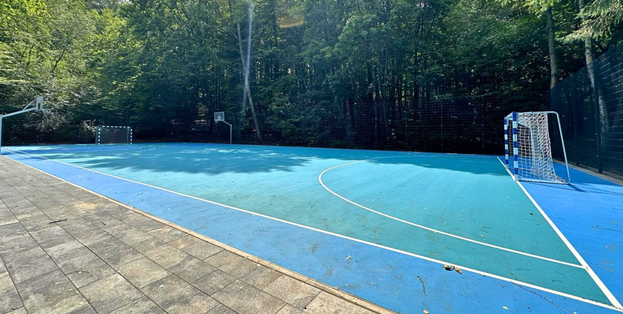 Nowa nawierzchnia boiska została wykonana z akrylu i gumowego shockpadu, o łącznej grubości 8 mm. Wybór tego rodzaju nawierzchni był wynikiem wielu konsultacji z ekspertami oraz wykonawcami. Nawierzchnia akrylowa charakteryzuje się wysoką odpornością na czynniki atmosferyczne oraz promieniowanie UV, co jest szczególnie istotne, ponieważ boisko znajduje się w zadrzewionym terenie. Dodatkowo, nawierzchnia ta oferuje doskonałą przyczepność, amortyzację oraz ochronę przed zużyciem, co zapewnia komfortowe i bezpieczne warunki gry zarówno w piłkę nożną, jak i koszykówkę.