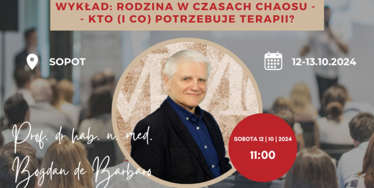 Już w sobotę, 12 października, podczas konferencji "Pomost Porozumienia" w Sopocie, prof. Bogdan de Barbaro – wybitny psychiatra i psychoterapeuta – poprowadzi wykład „Rodzina w czasach chaosu: kto (i co) potrzebuje terapii?”. To wyjątkowa okazja, by poznać perspektywę terapeuty, który wierzy, że jego misja wykracza daleko poza mury gabinetu, a terapia może być odpowiedzią na wiele wyzwań współczesnych rodzin.