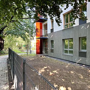 Dodatkowo, inwestycja została zaprojektowana z dbałością o ekologię – zadbano o zachowanie istniejącej zieleni, a teren wokół budynków został wzbogacony o nowe nasadzenia. Przy osiedlu znalazły się także miejsca parkingowe, wiaty rowerowe oraz plac zabaw dla dzieci.