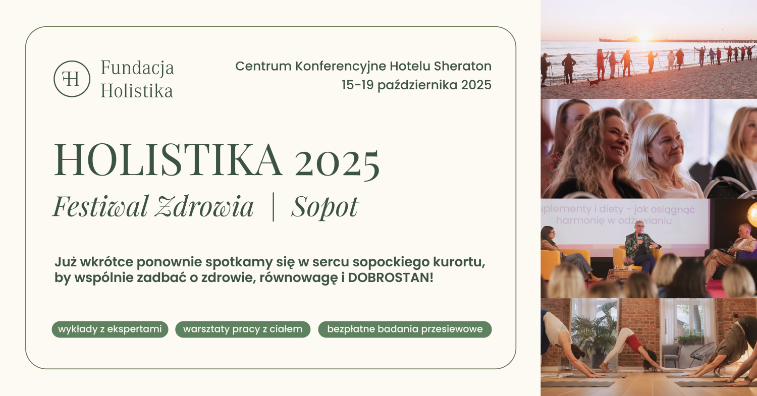 Fundacja Holistika zaprasza na drugą edycję Festiwalu Zdrowia Holistika. Główna część wydarzenia odbędzie się 18–19 października 2025 r. w Centrum Konferencyjnym Hotelu Sheraton w Sopocie. Tegorocznym motywem przewodnim będzie dobrostan rozumiany holistycznie – jako równowaga ciała, umysłu i emocji. W programie znajdziemy wykłady ekspertów, panele dyskusyjne, warsztaty pracy z ciałem oraz bezpłatne badania profilaktyczne. Organizatorzy podkreślają, że to wydarzenie dla osób szukających wiedzy i praktycznych narzędzi do dbania o zdrowie na co dzień.