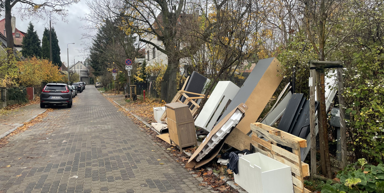 Na ulicy Mierosławskiego ktoś wyrzucił całkowicie dobre meble – kanapę, szafę, komodę, regały, sekretarzyk i inne sprzęty. Wszystko w porządnym stanie, niektóre rzeczy wyglądały niemal jak nowe.