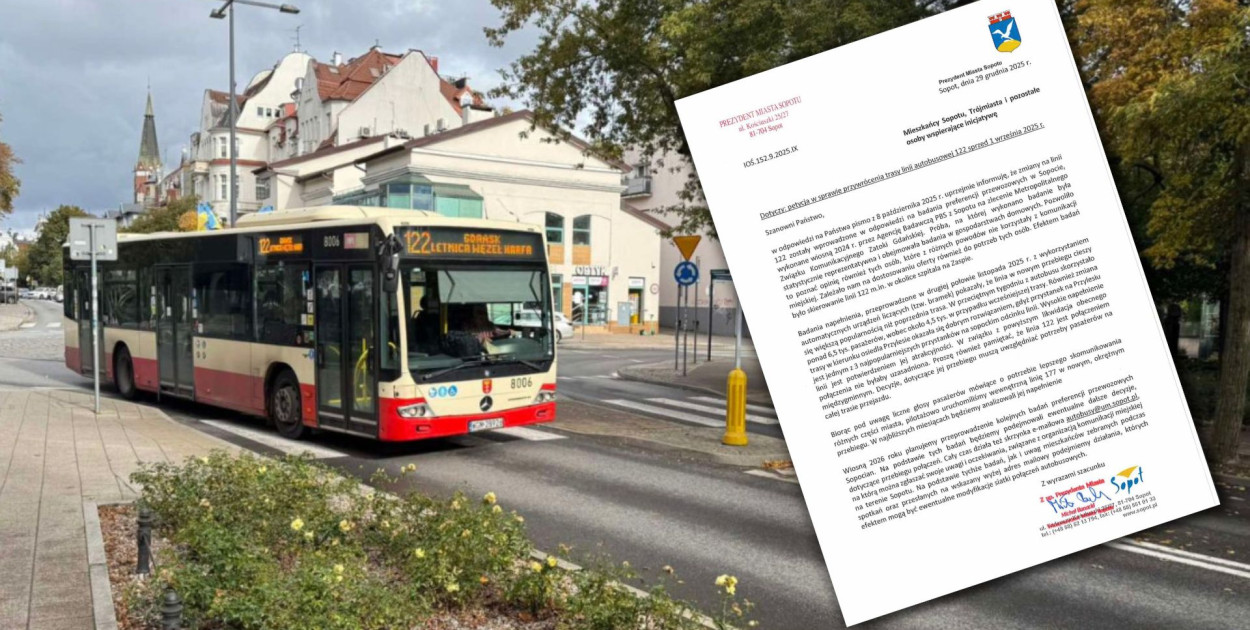 Do Urzędu Miasta Sopotu wpłynęły dwie petycje dotyczące zmian na linii autobusowej 122. Autorzy pism domagali się przywrócenia przebiegu trasy sprzed 1 września 2025 r. Pierwsza petycja została złożona 8 października, druga – 28 października 2025 r. Na oba pisma w miniony poniedziałek odpowiedział wiceprezydent Michał Banacki.