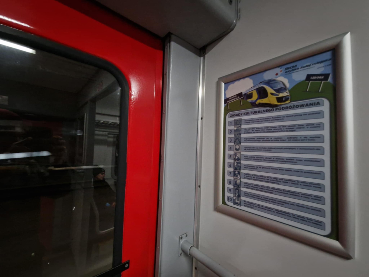 Wsiadając do pociągu SKM, warto rozejrzeć się po wnętrzu wagonu. W wybranych gablotach obok drzwi umieszczono plakaty wyjaśniające zasady kulturalnego podróżowania, które w punktach przypominają o najważniejszych normach społecznych. To jasna wskazówka dla podróżnych, jak dbać o wspólną przestrzeń i unikać konfliktów z innymi pasażerami.