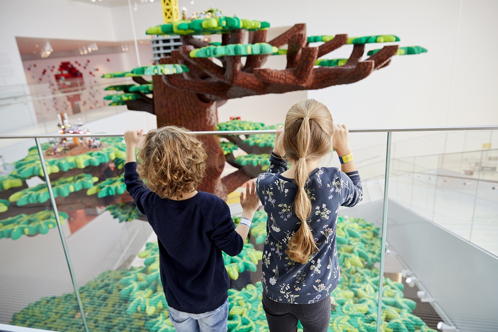 To imponujący model o wysokości 15 metrów, zbudowany z ponad 6,3 miliona klocków, pnący się przez kolejne piętra budynku. Odwiedzający mogą również korzystać z dziewięciu tarasów widokowych wyposażonych w nowoczesne