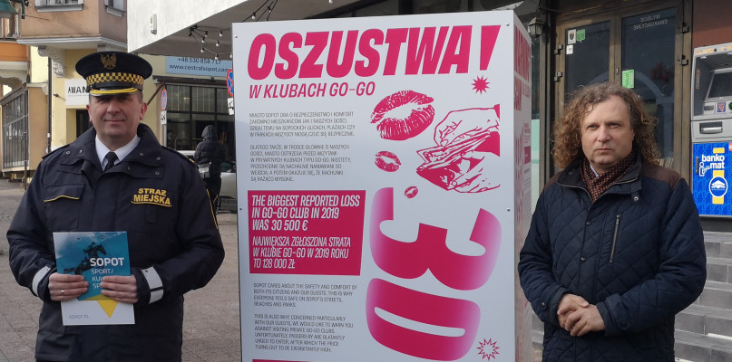 Nasze miasto rozpoczęło kampanię informacyjną wymierzoną przeciwko sopockim klubom go-go. Przed czterema lokalami znajdującymi się przy ul. Bohaterów Monte Cassino stanęły kubiki informujące o oszustwach, do których dochodziło w tego typu miejscach. Ostrzeżenia stanęły naprzeciw Show Gentelman's Club, Feniks Cabaret Show, Vanity Club oraz w pobliżu klubu Underground.