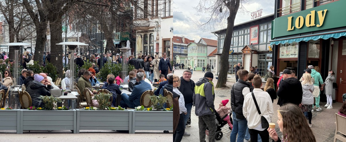 Duży ruch widać także w gastronomii. Restauracje i kawiarnie po raz pierwszy w tym roku szerzej wystawiły ogrodki gastronomiczne, które szybko zapełniły się gośćmi. Przy popularnych miejscach – zwłaszcza lodziarniach i punktach z przekąskami – ustawiają się długie kolejki turystów.