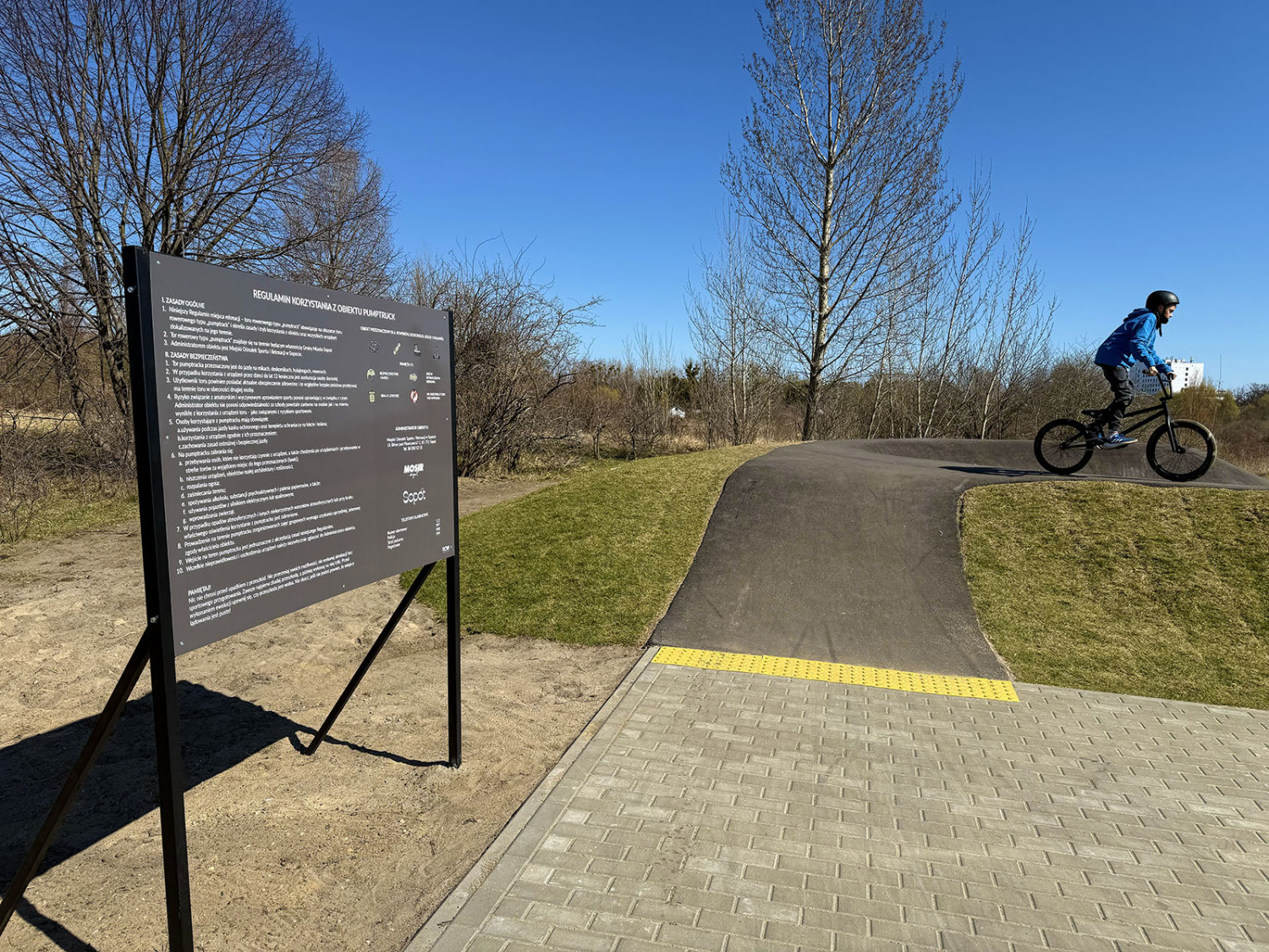 To jednak nie tylko sam tor. Na terenie obiektu powstało również miejsce do odpoczynku i przygotowania do jazdy. Ustawiono ławki, stojaki na rowery oraz tablice informacyjne.
