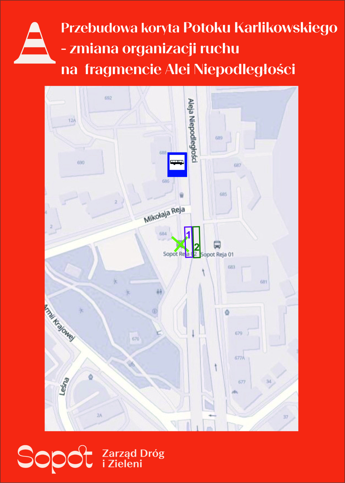 Roboty podzielono na dwa etapy. Etap pierwszy obejmie okolice zatoki autobusowej. Na tym etapie nie przewiduje się zamknięcia prawego pasa ruchu. Etap drugi zakłada już zajęcie prawego pasa Alei Niepodległości, co może odczuwalnie wpłynąć na płynność przejazdu.