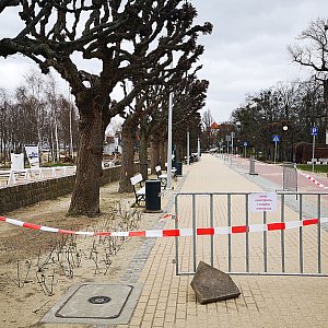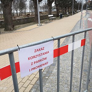Zgodnie z rządowymi obostrzeniami pierwszego kwietnia 2020 roku wprowadzono zakaz korzystania z plaży, terenów Parku Północnego, Parku Południowego, sopockich błoni i promenady nadmorskiej. Zamknięte zostały również inne zielone tereny użytkowe, takie jak, m.in. zbiornik Okrzei, staw Reja czy staw Kochanowskiego. Służby miejskie i MOSiR otaśmowały 44 wejścia na 4,5-kilometrową sopocką plażę.