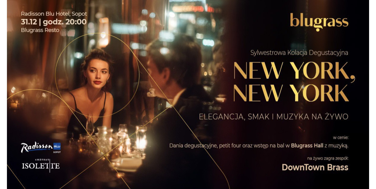 Uczestnicy kolacji mają wstęp również na odbywający się w Blugrass Hall sylwestrowy bal „New York, New York” (bez miejsca siedzącego w przestrzeni Blugrass Hall – miejsca siedzące dla gości kolacji degustacyjnej znajdować się będą w części restauracyjnej). Imprezę uświetni m.in. muzyka na żywo w wykonaniu bandu DownTown Brass, który wiernie odda klimat wielkich nowojorskich estrad jazzowych i swingowych. Po doznaniach kulinarnych przyjdzie więc czas na szampańską zabawę, noworoczne toasty i taneczne popisy na parkiecie do wczesnych godzin porannych.