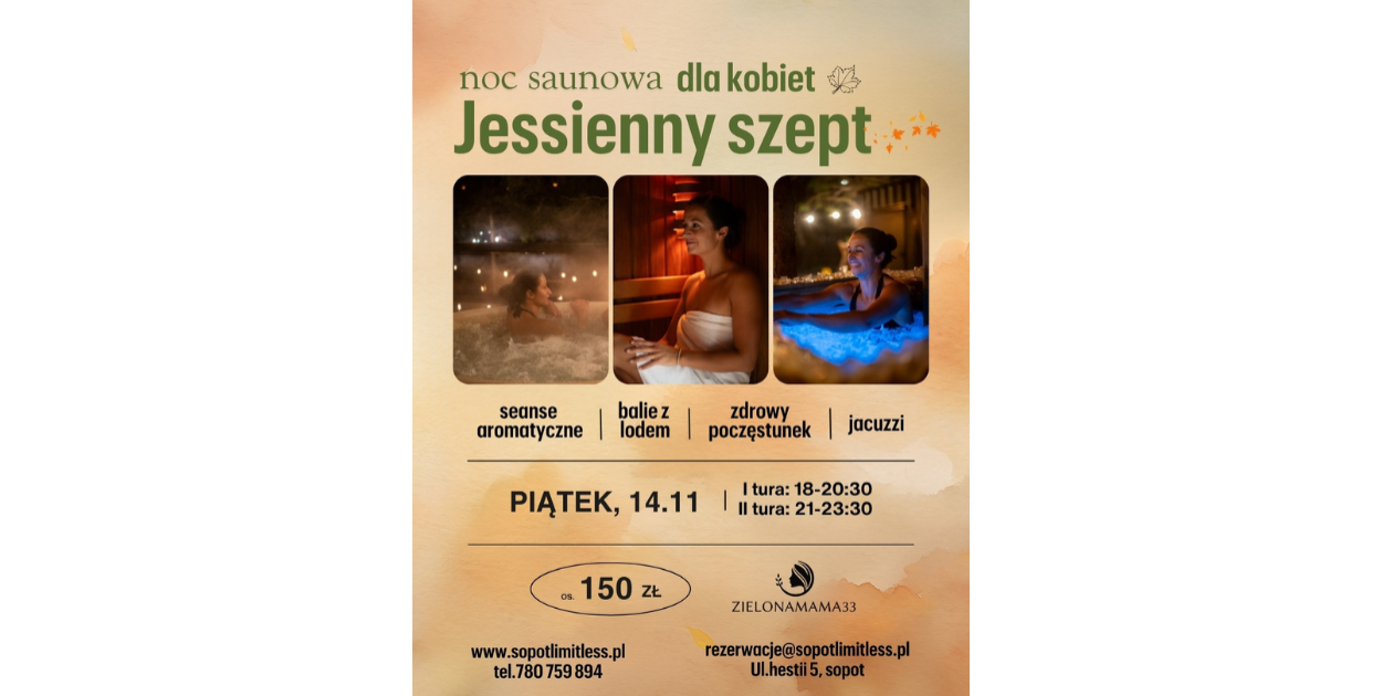 Noc saunowa tylko dla kobiet „Jesienny Szept” — wyjątkowy wieczór pełen aromatycznych seansów, relaksu i kobiecej energii