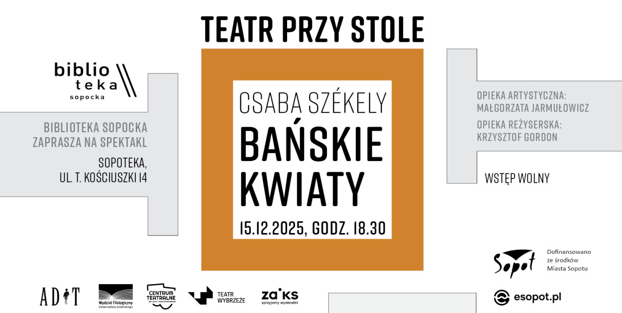Projekt Teatr przy Stole jest finansowany ze środków miasta Sopotu.