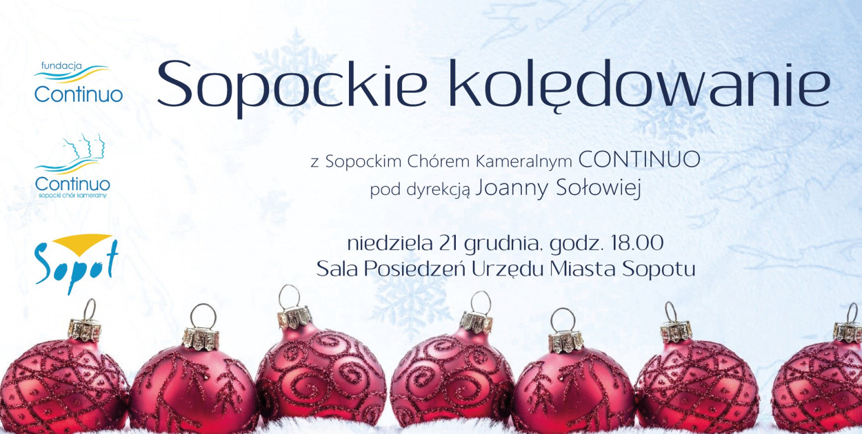 Porzućcie przedświąteczną krzątaninę i przybywajcie do Sali Herbowej Urzędu Miejskiego w Sopocie, by posłuchać tradycyjnych kolęd w wykonaniu SCK CONTINUO.