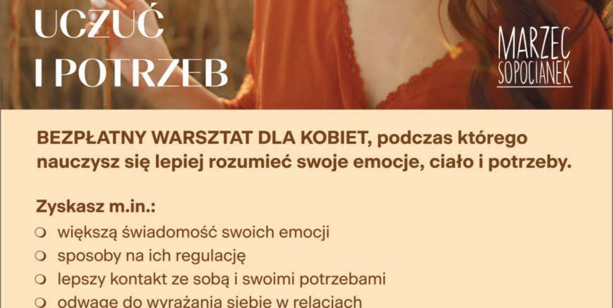 Bezpłatny warsztat rozwojowy dla kobiet, które chcą nauczyć się słuchać swojego ciała, nazywać emocje i dbać o swoje potrzeby.