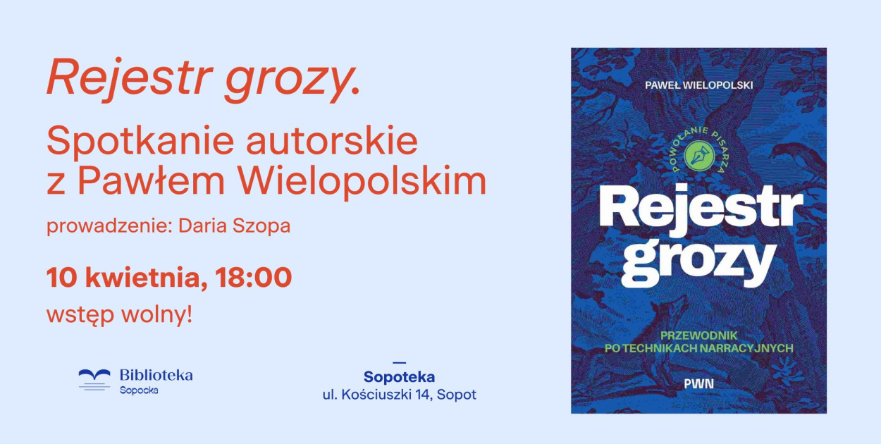 Zapraszamy na spotkanie z Pawłem Wielopolskim, autorem książki „Rejestr grozy. Przewodnik po technikach narracyjnych”. To fascynująca podróż po świecie literackiego i filmowego horroru – od klasycznych chwytów budowania napięcia po subtelne sposoby wywoływania niepokoju u czytelnika czy widza.