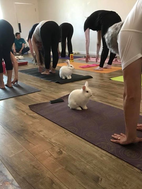 Jakieś sposoby na spędzanie czasu razem z królikiem? A może królicza joga? Ommmmmm... ?♀️?♂️ Takie inspiracje znaleźliśmy ostatnio! Czy są tu osoby, które próbują praktykować jogę w domu? Jak reagują Wasze króliki? Mój oczywiście podgryza matę, szturcha mnie nosem i wchodzi na mnie, kiedy tylko jest taka możliwość. :) MM