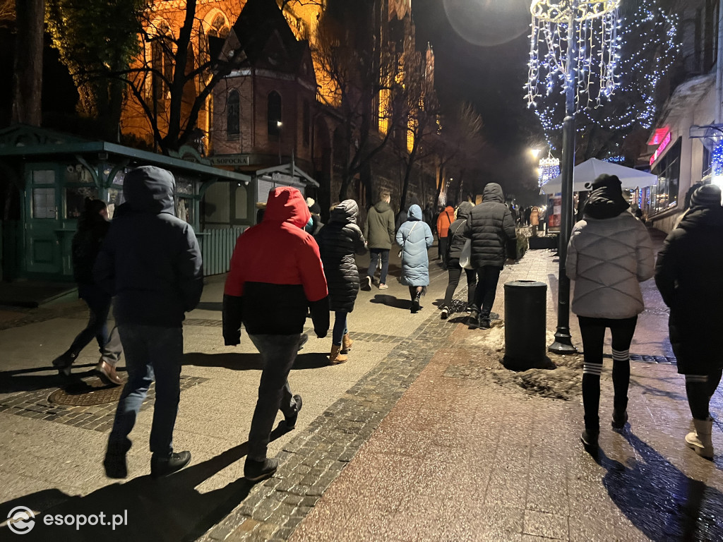 W ostatni dzień roku Sopot zapełniły tłumy. Tysiące osób postanowiło przywitać Nowy Rok w kurorcie. Wypełniły się kluby, restauracje i hotele. Przed północą większość bawiących przeszła pod molo i na plażę, gdzie znajduje się też Sopockie Miasteczko Noworoczne. Miasto rozświetliło się setkami fajerwerków, kanonada wystrzałów i rozbłysków trwała ponad 20 minut.